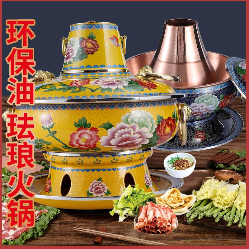 景泰蓝铜火锅搪瓷珐琅火锅木炭环保油铜火锅老式纯紫铜商用