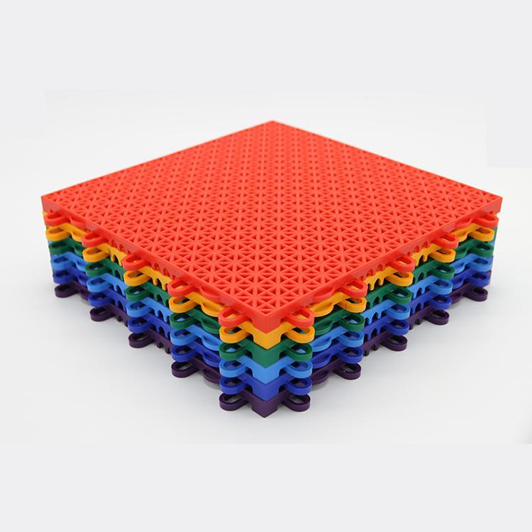 8. 支撑系统:双层结构,背面采用40支独立减震垫设计,圆柱形增厚支撑脚,均匀受力。保证场地平整度,提升运动流畅性。