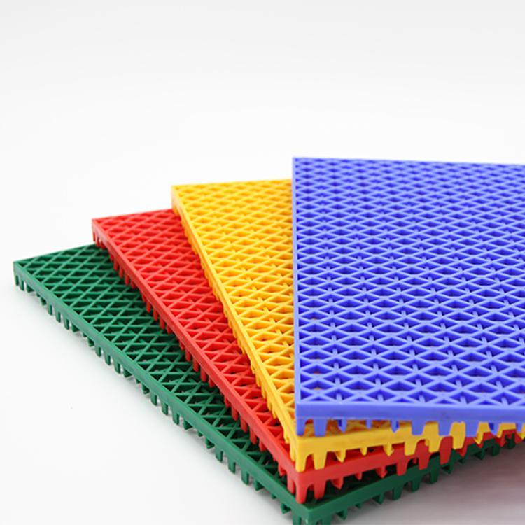 8. 支撑系统:双层结构,背面采用40支独立减震垫设计,圆柱形增厚支撑脚,均匀受力。保证场地平整度,提升运动流畅性。