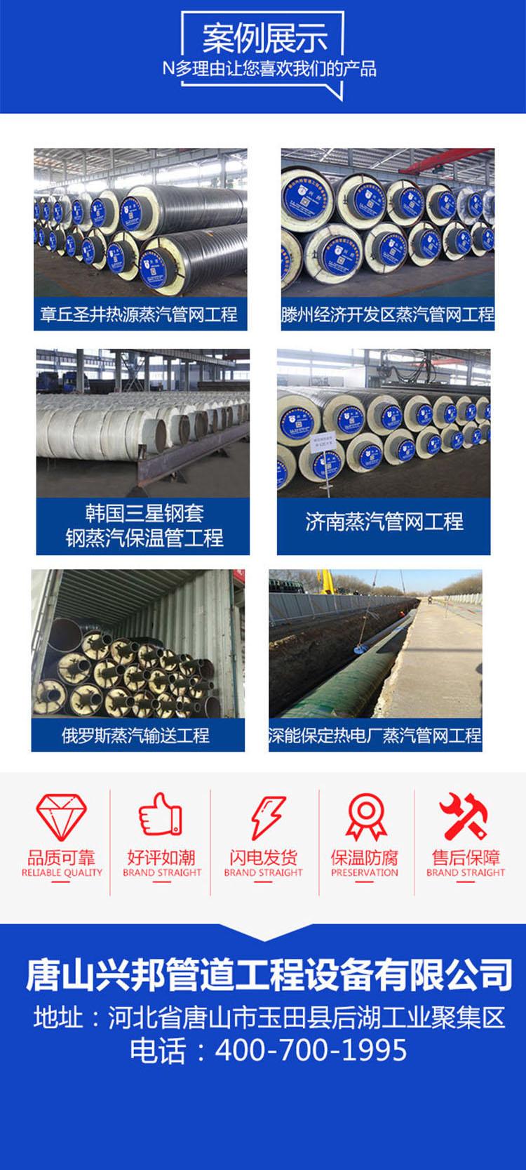 唐山兴邦管道工程设备有限公司是一家具有多年生产经验的集聚氨酯预制直埋保温管、钢套钢蒸汽保温管、PE防腐管、内外涂敷FBE防腐管、螺旋钢管、防腐保温管件以及高密度聚乙烯外护管研究、开发、生产、销售、补口安装、服务于一体的综合性服务型专业生产企业。