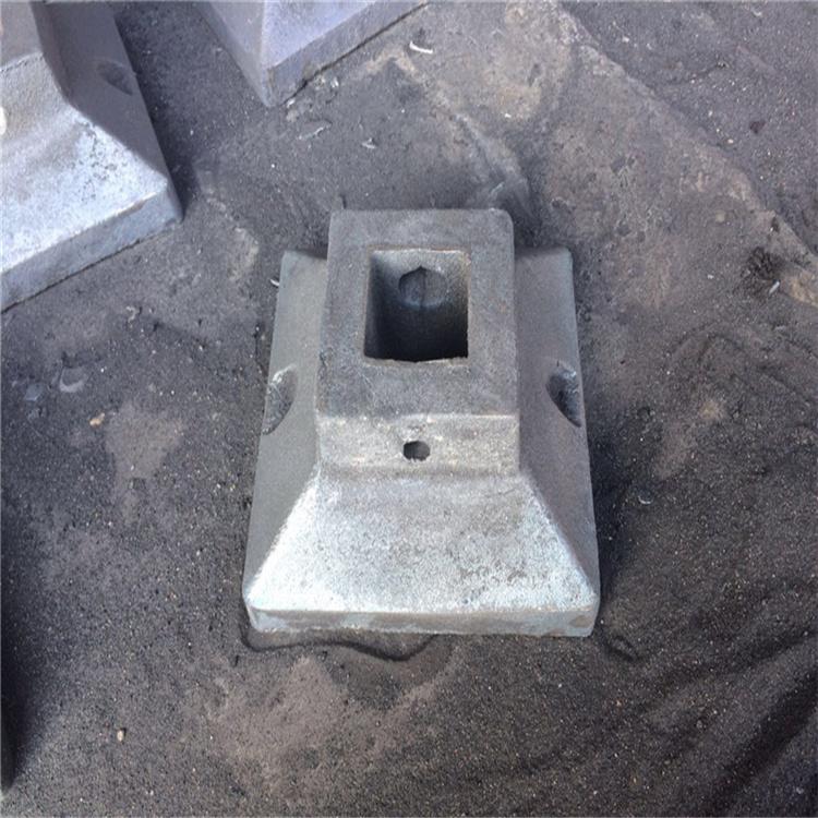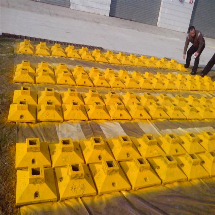 自身重量重、抗压能力强:本护栏底座(护栏基座)重量重,能使护栏稳固,安装时无需在地面上打道钉或打膨胀螺栓,节能又环保。高分子复合底座重量:10-50公斤不等(可按客户的要求定制护栏底座重量),可抗压60吨以上。铸铁底座:由铸铁经过高温锻造而成的,铸铁底座抗压力强、质量重,不轻易损坏使用时间长,外形多样,重量越高其稳定性、固定性越好。