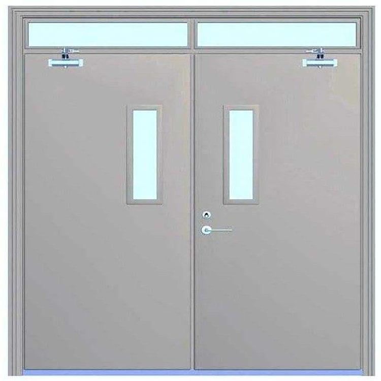 其次,钢制防火门在安装过程中,考虑到门框的弯曲变形这个问题,要在门框宽度方向用木枋支撑起来,门框下脚埋入地面下20mm,再将门框与墙体上的预埋件焊接。然后在门框上角的墙上开洞,灌注水泥、砂、膨胀珍珠岩(1:2:5)的混凝土,等混凝土凝固后就可以使用。