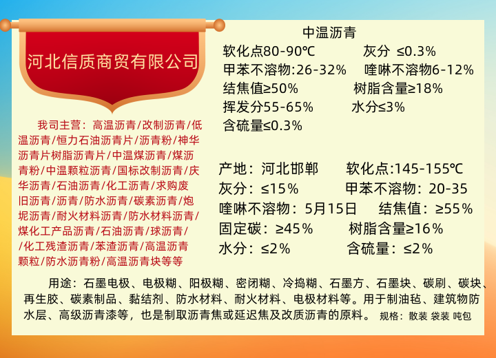煤焦油深加工下来的沥青软化点高灰分小结焦值高