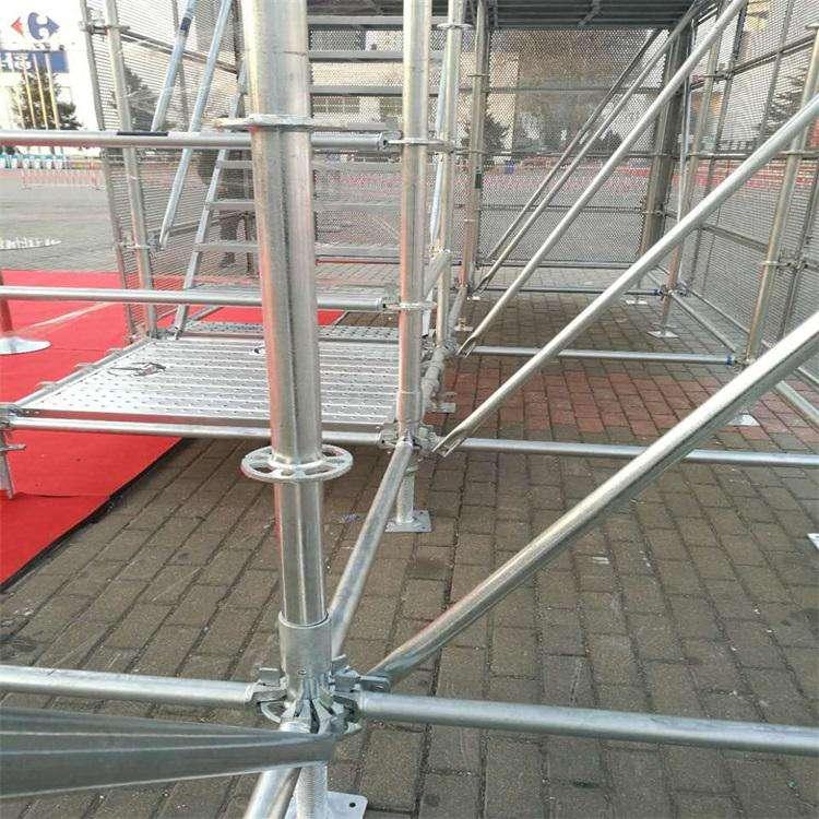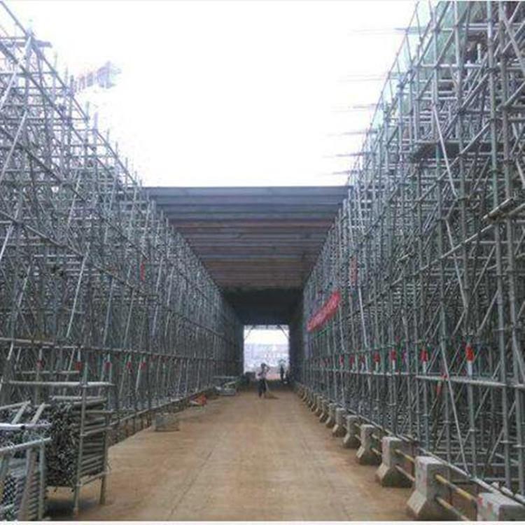 盘扣式脚手架具有构件少,安装快速简单,系统牢固,结构稳定,承载力高的特点;该支撑系统克服异型施工困难,灵活运用于各类型模板支撑架,舞台搭设架,施工操作架,桥梁施工等。