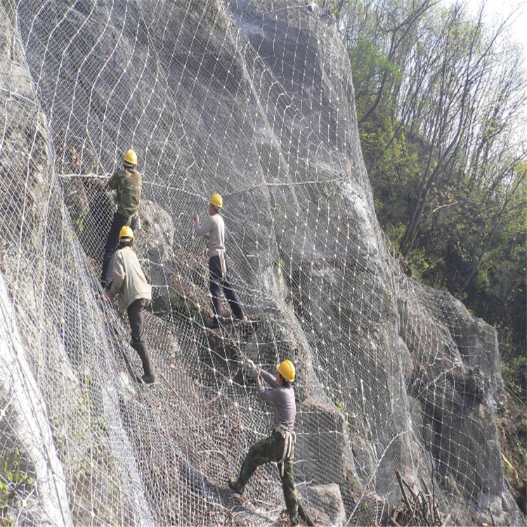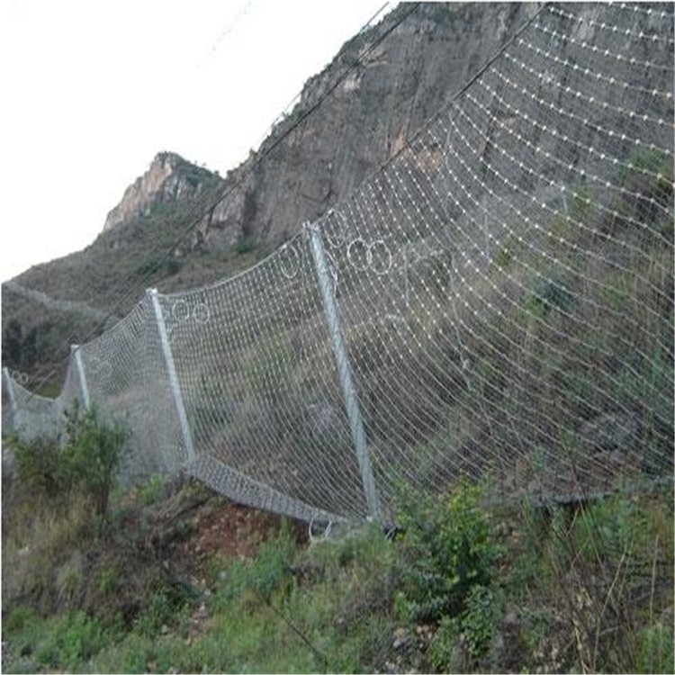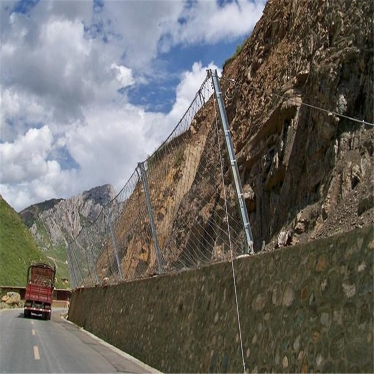 SNS主动防护网由高强度钢丝绳柔性防护网、锚杆及其它安装附件组合安装而成,整个系统采用模块化安装方式,缩短了工期和施工费用。SNS型主动防护系统结构配置主要网型是钢丝绳网加钢丝格栅,主要功能是围护作用,限制落石运动范围,适用于小石块滑落的地方,与传统的施工方法相比,克服了老式刚性边坡防护施工中工期长、对环境有一定污染且工程质量不易控制等诸多弊端。