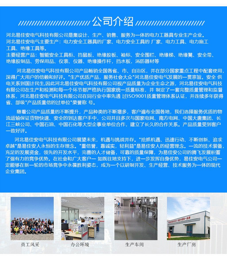 主营:电气设备的技术研发;电力安全工器具、反光制品、标示牌、安全带、驱鸟设备、挡鼠板、防汛器材、变电设备及