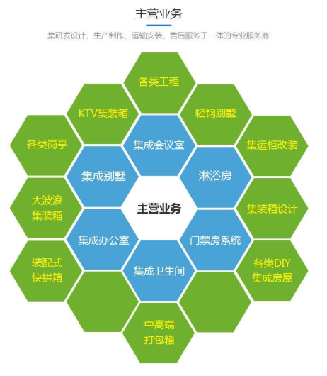 主营: 集装箱、移动板房、集装箱配件的设计、加工、安装、销售、租赁;制冷设备、家具的租赁;室内外装饰装