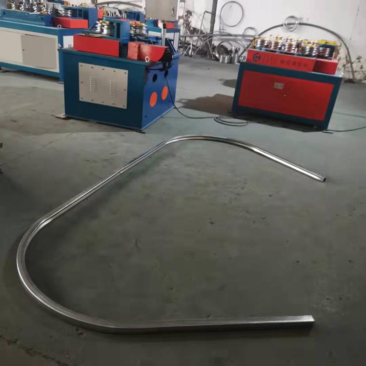 数控拉弯机可以弯异型管可以弯铝合金,弯管材直径150的管,厚度可以达到8个厚度,像这种大的管材,我们可以定做成加重三轮的设备,是专门弯大管材的一款设备,还有就是我们做门窗的,弯S型的样品,我们的十轮的弯管机就可以完成的,也是一款 专门弯多角度的一款产品,我们的技术人员,现在也在生产一款新的设备,可以弯方管不变形,并且没有凹槽的。