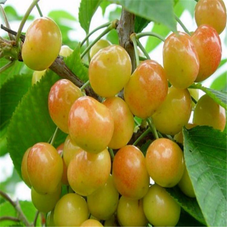 果实近圆形,平均单果重8.9g,最大可达12.0g;果实硬度大,果肉松脆,可溶性固形物含量16.8%;果皮鲜红色,完熟时紫红色,果皮厚而韧,有光泽,外观漂亮;果肉黄白色,多汁,甜酸适口。粘核,核较小,可食率93.2%。保定地区6月上旬果实成熟,成熟前遇雨不裂果,为抗裂果中熟品种。果实耐贮运,货架期9~10d。抗旱、抗寒能力强、采前不落果;较抗细菌性流胶病和炭疽病。幼树生长强健,萌芽率强,成枝力弱,以短果枝和花束状果枝结果为主,自花结实。栽植后3年见果,4年进入初果期,5年进入盛果期,9年生树平均产量1080kg/667m2。