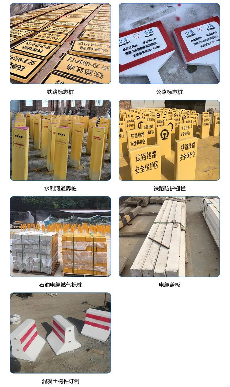 主营:混凝土构件订制、铁路标志桩、公路标志桩、水利河道界桩、铁路防护栅栏、石油电缆燃气标桩、电缆盖板