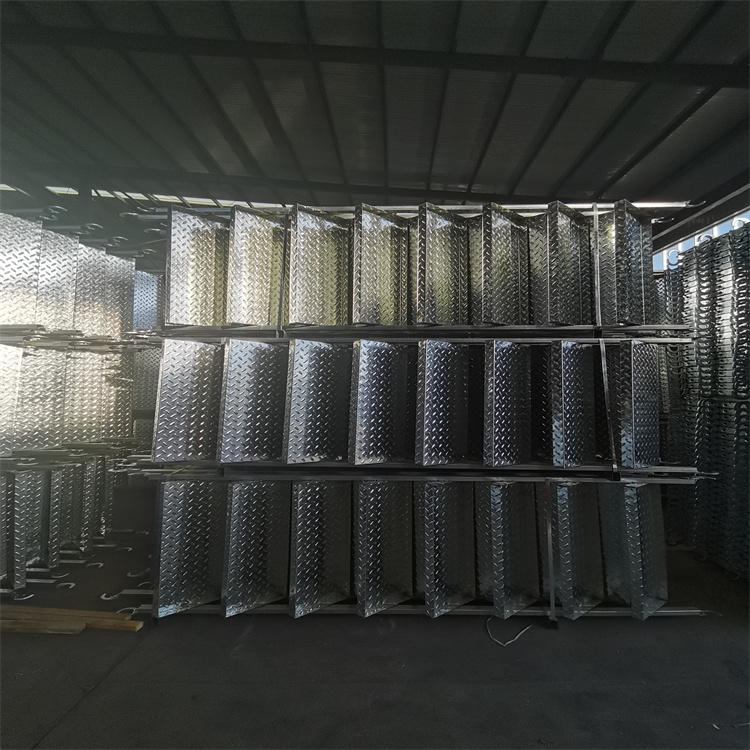 规格相同的脚手板,木跳板的重量是钢制脚手板的1.5-2倍重量,而且雨天木板吸水后更笨重,极不防滑。工人搭架施工时,木板须2人抬运,而我公司生产的钢跳板一人可拿2-4片,侧盒设计,强化安全,两端冲有安装连接孔,便于铺设极大的提高了工作效率,高强度性使得脚手架管的数量也能减少使用。