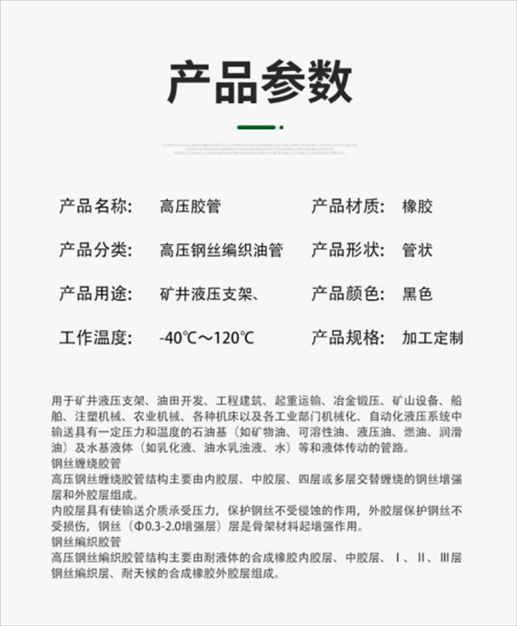 | 钢丝直径 | 0.3-2mm | 输送介质 | 水、油、汽 |