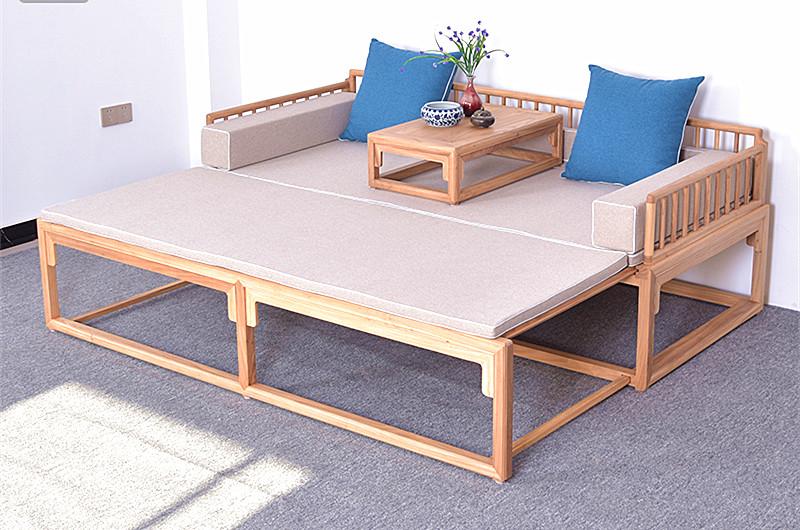 新中式推拉式罗汉床伸缩实木沙发床简约免漆喝茶床