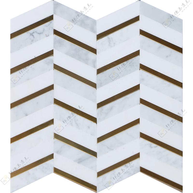 简约现代装饰人字拼大理石马赛克人形石材马赛克背景墙