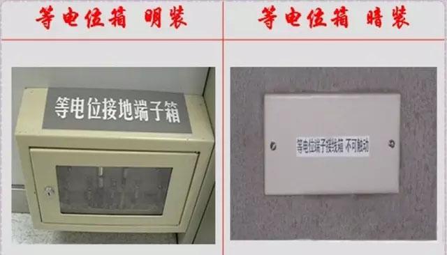 等电位箱的外表面要满足建筑装饰美观要求,箱门(盖板)上必有“等电位联结端子箱,不可触动”标识,颜色为黑色。箱门应与装饰面平齐,不歪斜,无污染。