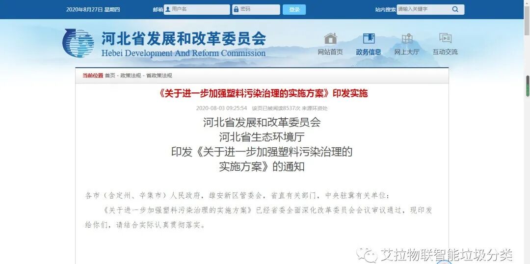 近日,河北省发展和改革委员会、河北省生态环境厅联合印发了《关于进一步加强塑料污染治理的实施方案》。