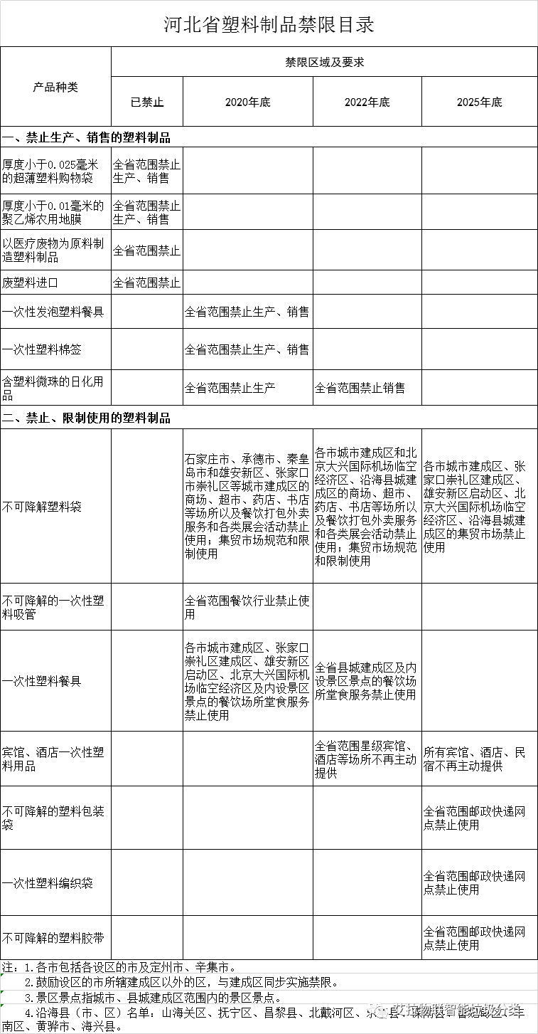 河北省塑料制品禁限目录