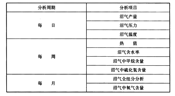 沼气分析化验项目及检测周期可按下表
