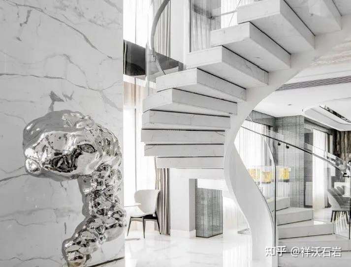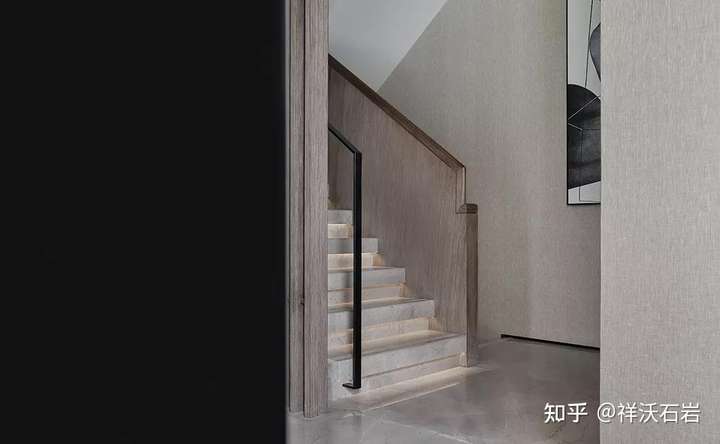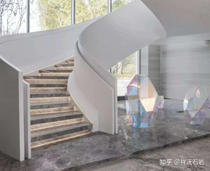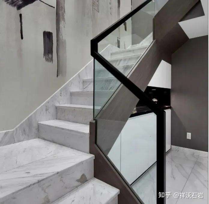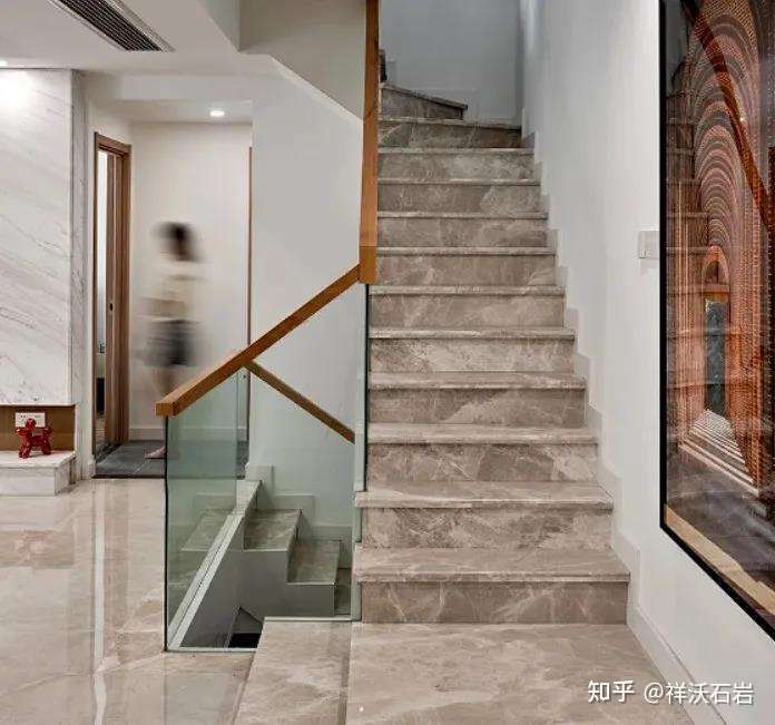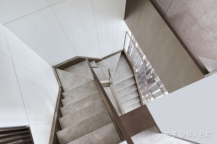 另一方面,楼梯的使用中,还有一个独特的人的心理因素在起作用:在落差较大的地方,石材表面光泽度太高,会给人一种不安全感。